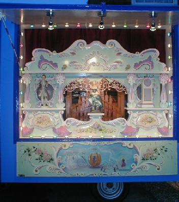 Mr. White built the front of the organ and carved the two figures of Prince Charming and Cinderella which are fitted to the front of the organ. He was built the organ into it's current trailer. The organ was sold to the Sheer Brothers from Monticute in Somerset. They sold it on to Mr. Robin Brailey from Dunsfold in Surrey who kept it until 2006. During this time the trailer was light blue with dark blue trims and attended many local events. It was then sold to Mr. Fred Batt from Capel in Surrey who repainted the trailer cream. I purchased the organ in September 2009.